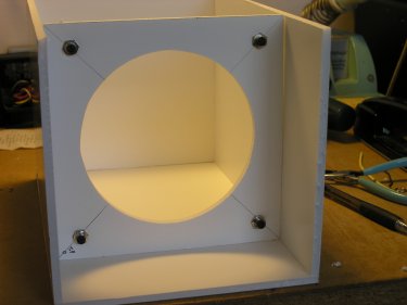 cap from the refractor as a template, I cut a 122 mm hole in one support